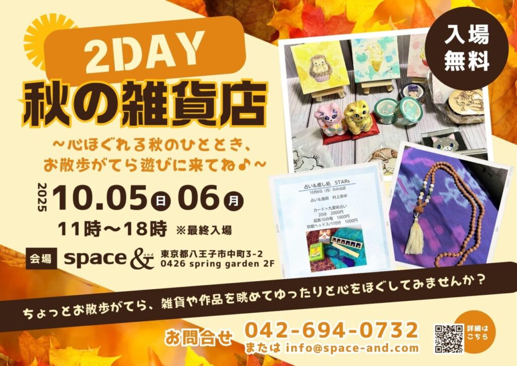 ◇ 日時:2025年10月5日(日)・6日(月)11時~18時(最終入店)